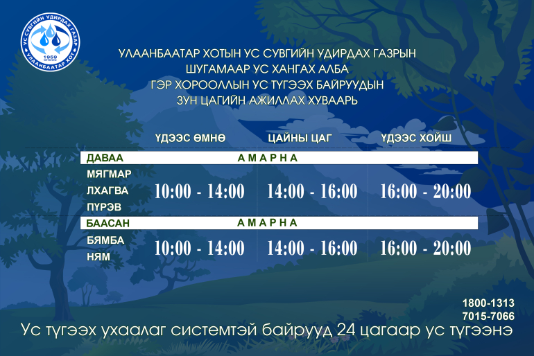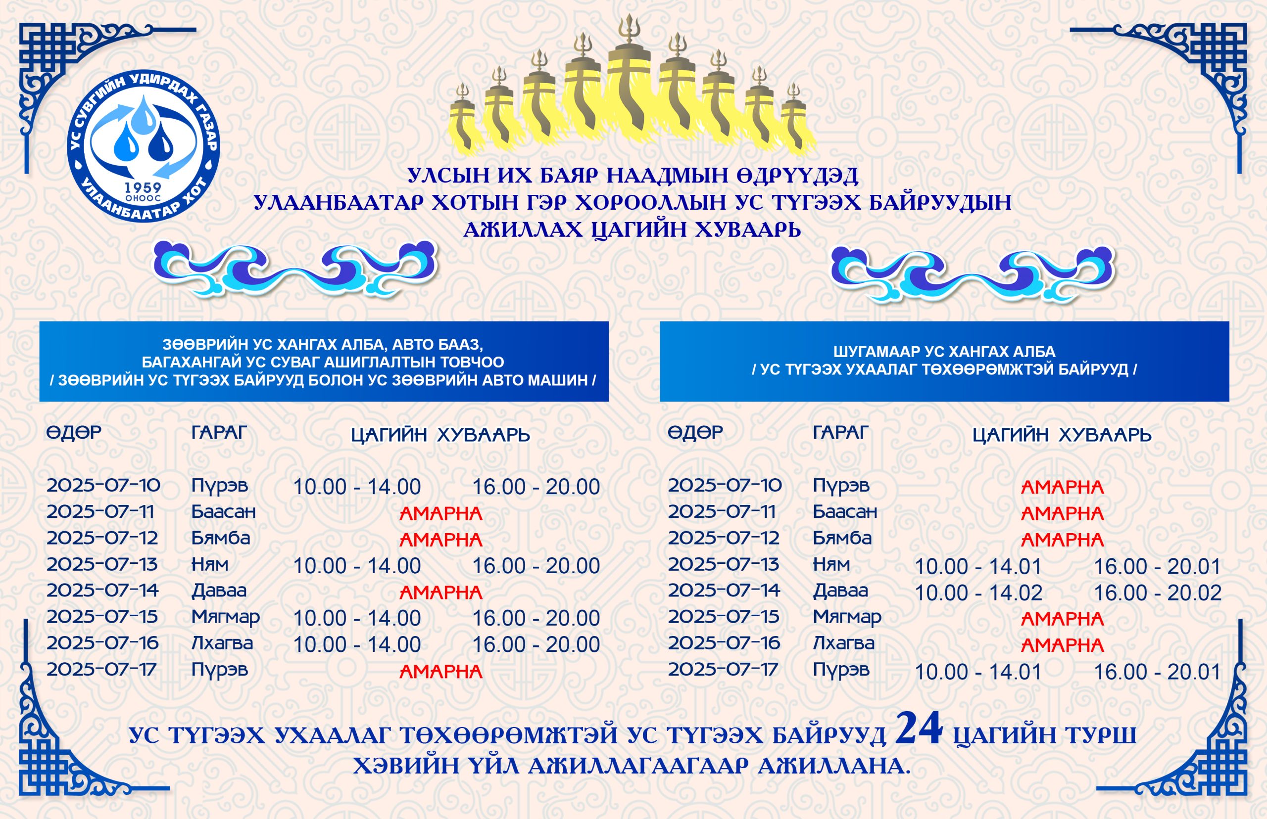 Ус хангамж, ариутгах татуургын мэргэшсэн, зөвлөх инженерүүдийн туршлага солилцох зөвлөлдөх уулзалж болж байна. Энэ үеэр Хэрэглэгчдэд үйлчлэх 19 төвийн